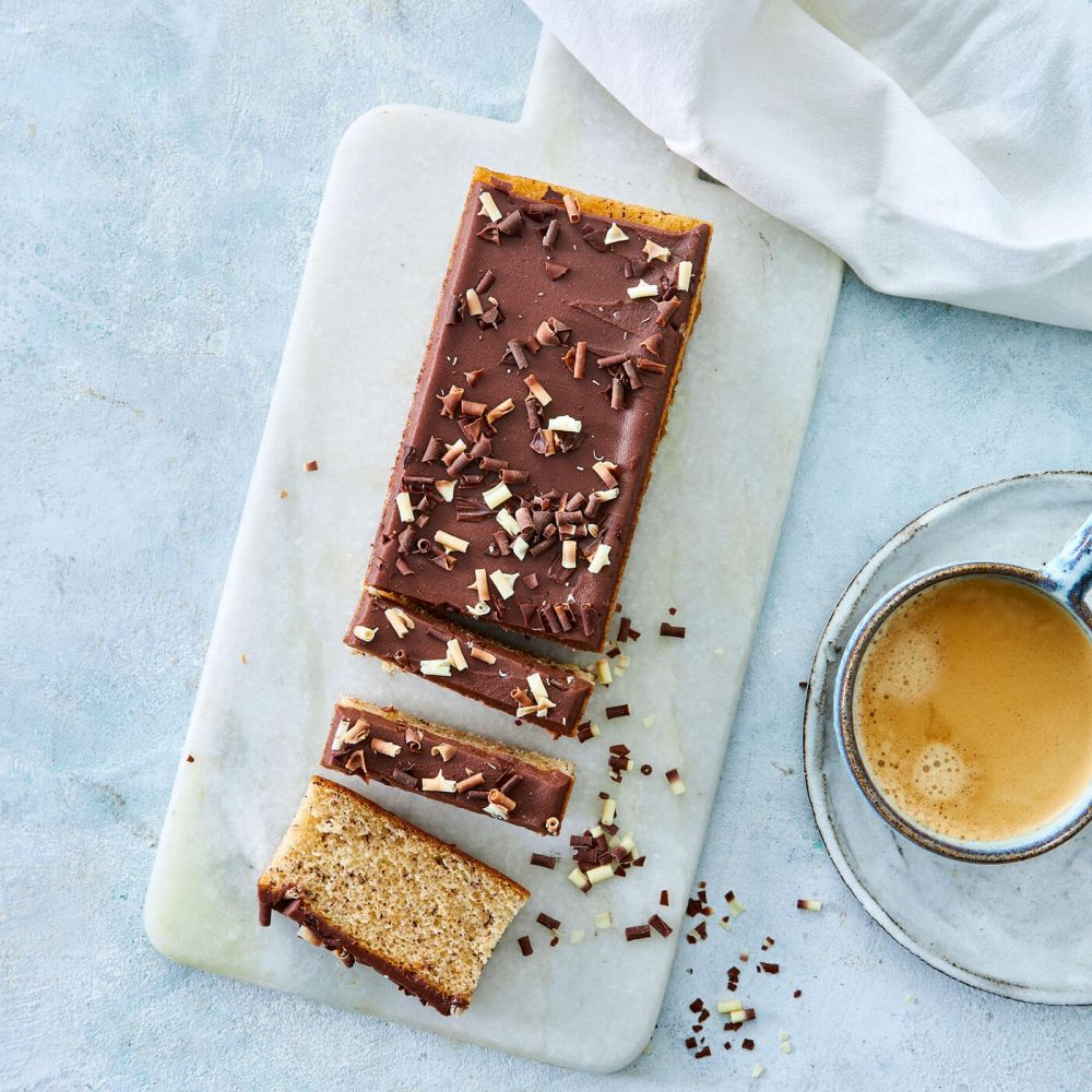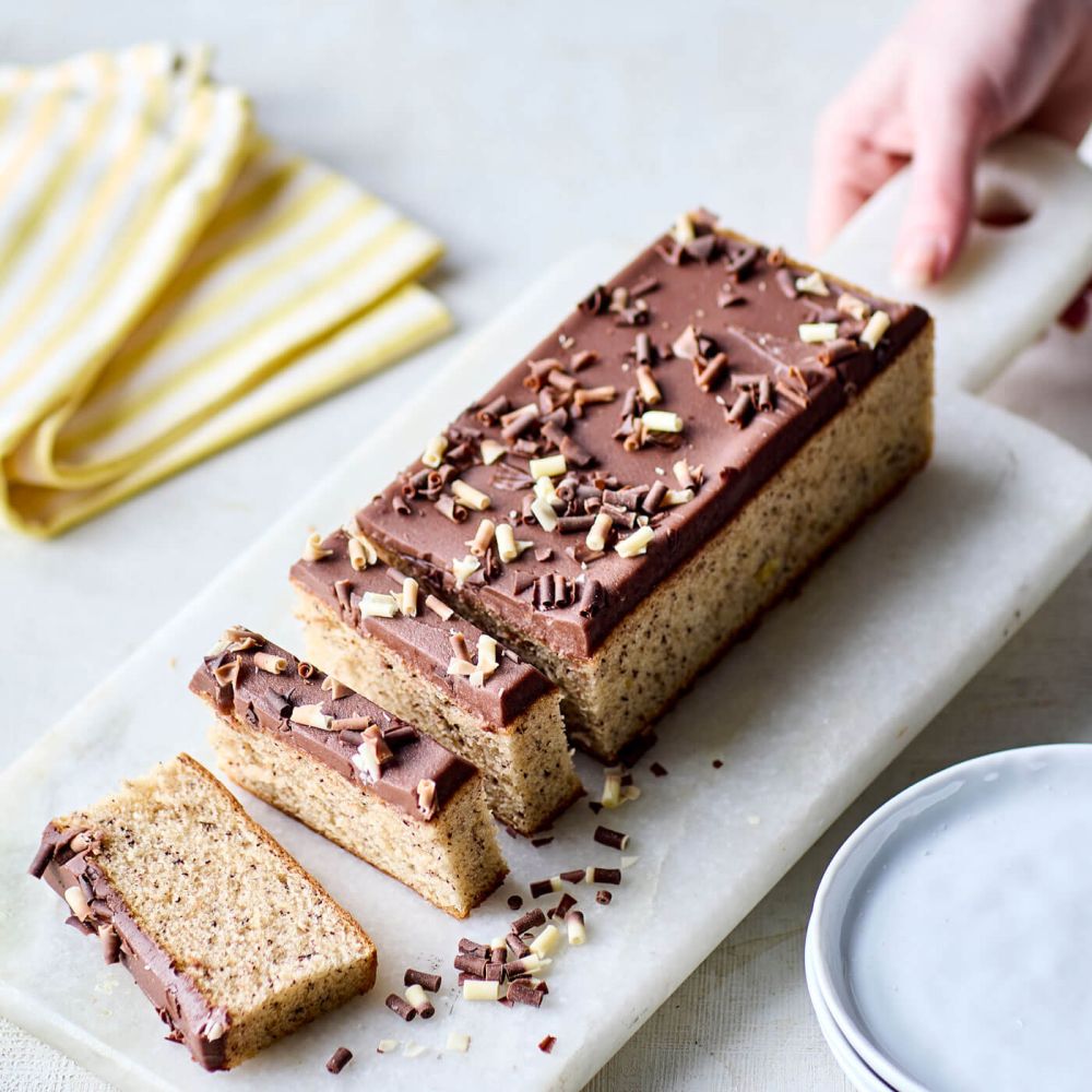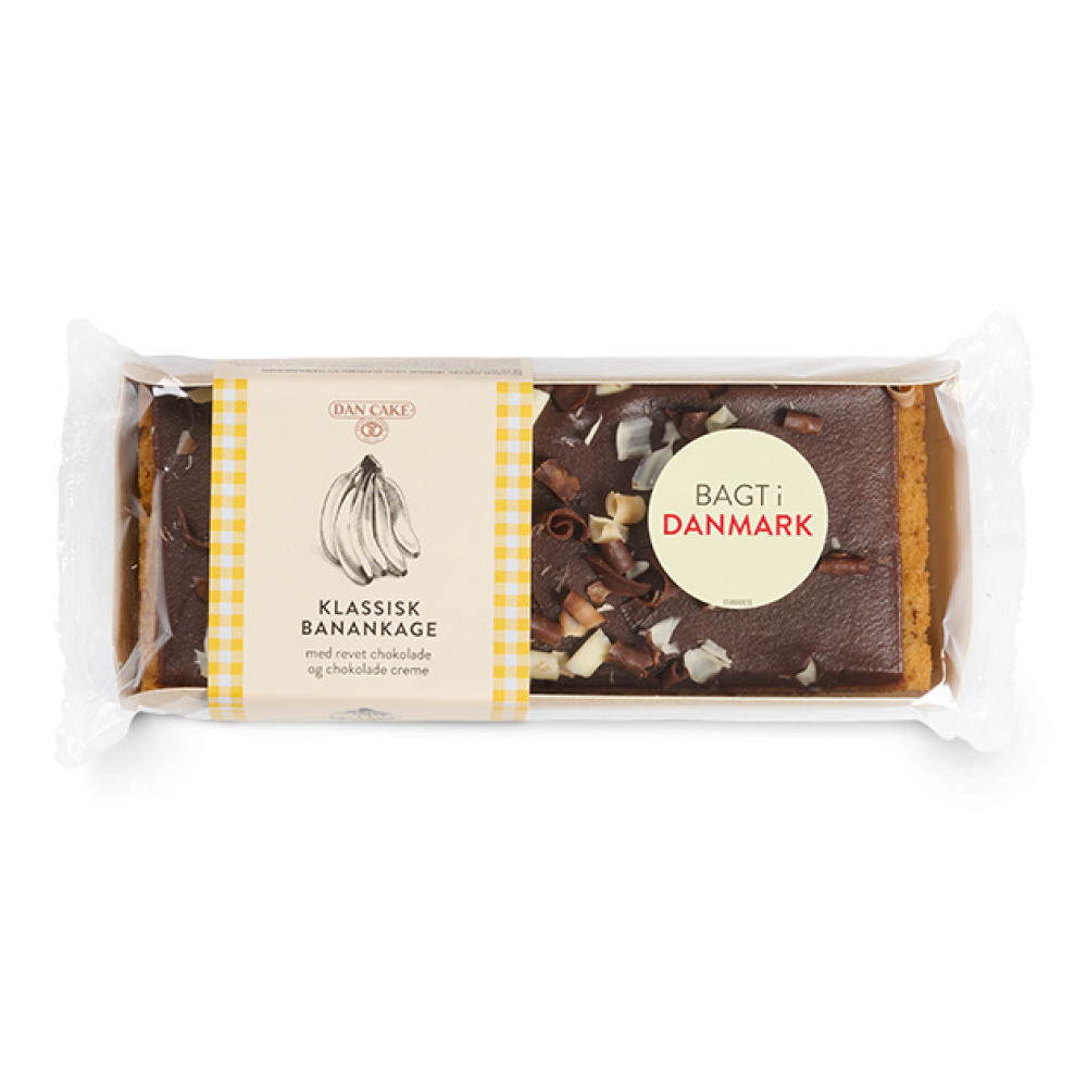 Klassisk Banankage har samtidig et strejf af elegance over sig – med sine fine chokoladespåner i forskellige nuancer, der pirrer øjet og vækker appetitten.